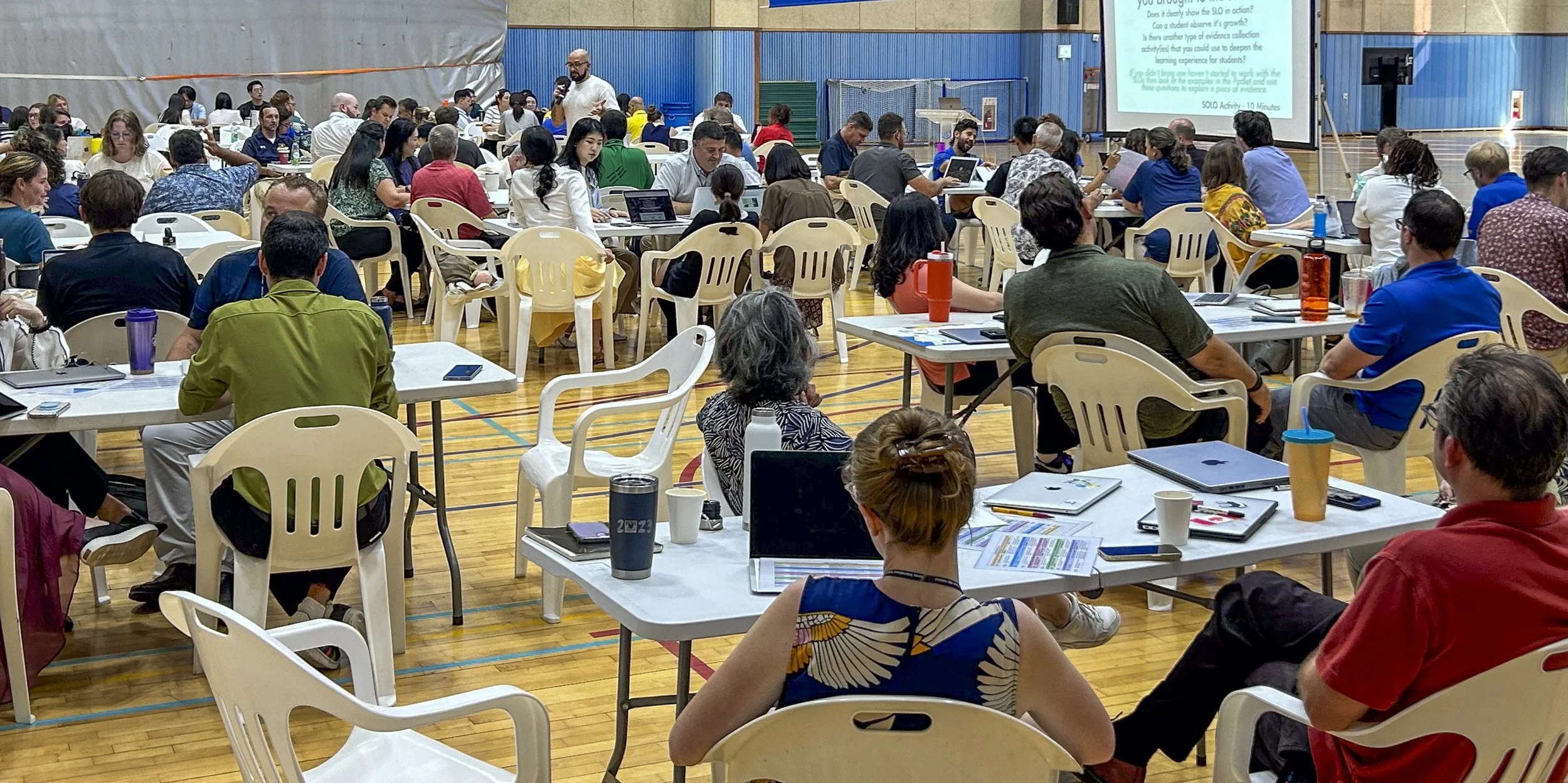 With the new SLOs refined, Aaron facilitated a two-day professional development session for 160 educators.